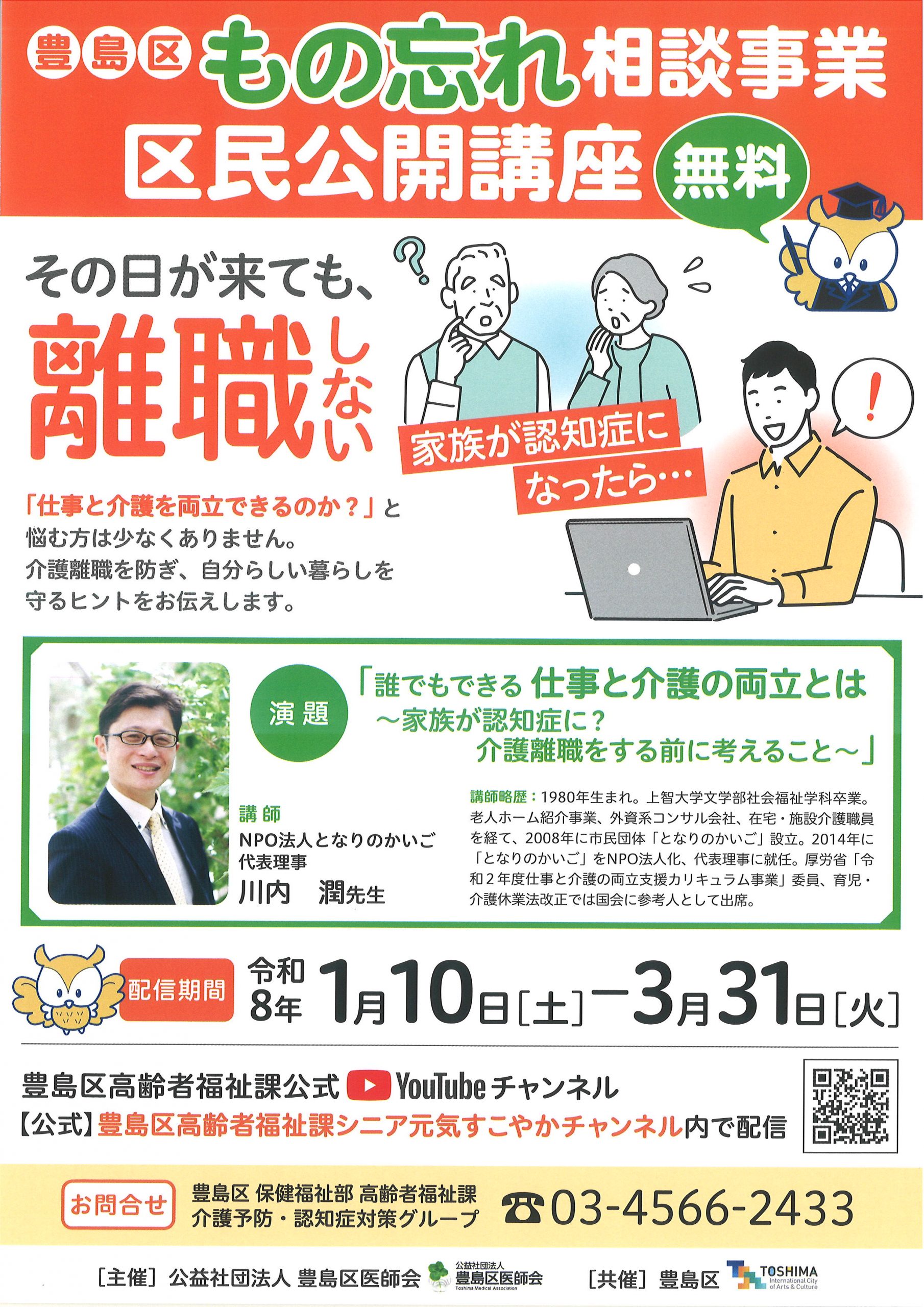【2026/01/19】 令和7年度 豊島区もの忘れ相談事業区民公開講座 YouTube配信(2026年1月10日(土)〜3月31日(火))